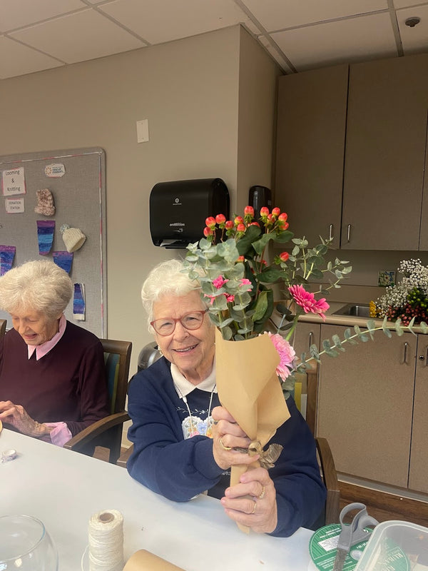 At our bouquet decorating event, teens and seniors worked side by side to create beautiful flower arrangements. The room was full of smiles, conversations, and the joy of making something meaningful together